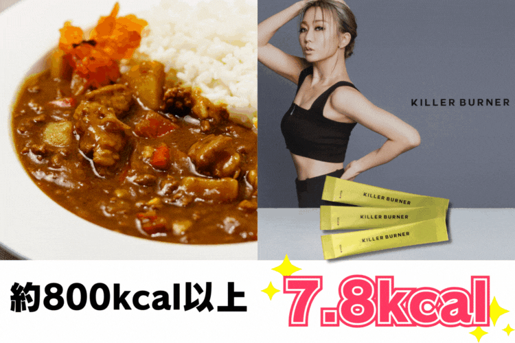 ※カレーライス1食を(859kcal)KILLERBURNER1包(7.8kcal)に置き換えた場合